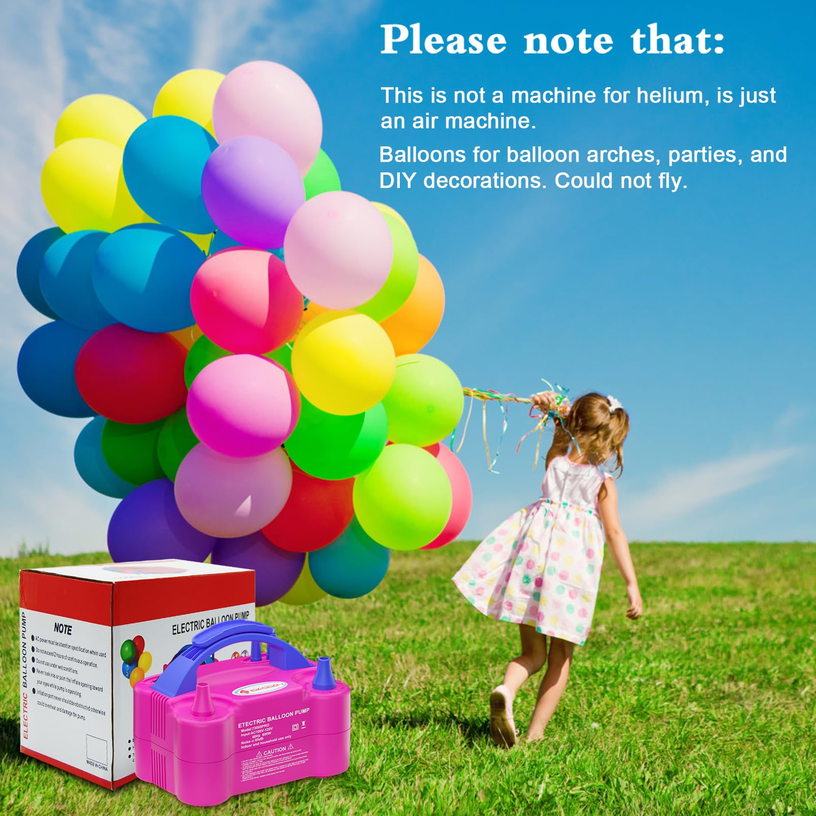 • Product weight: 2.9lb. Color: Rose red. Air volume 750 (L/min). Power: 600W. Package Includes: 1 x Balloon Air Pump, 2 x Balloon Tying Tool,1 x User Manual.