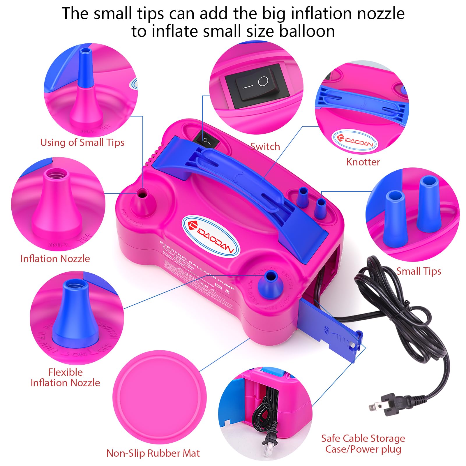 • This electric balloon pump fit latex balloon and decorative balloon. Double pump, balloon air pump. The balloon pump has two modes: manually and automatically.